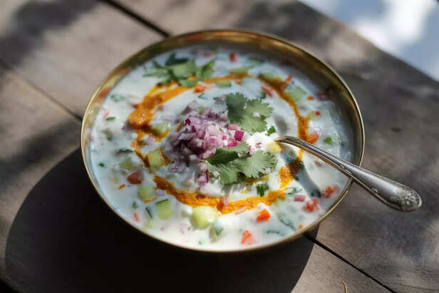 The yogurt (curd) in Raita promotes gut health and helps relieve digestive issues like acidity and constipation.