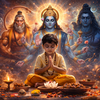 This powerful mantra teaches children to seek truth and wisdom in every action. The meaning From untruth, lead me to truth; from darkness, lead me to light helps little minds understand right and wrong, honesty, and curiosity. Chanting this in the morning strengthens moral values, mindfulness, and gratitude. Mythologically, it connects to divine knowledge and learning, reminding children that life is a journey of discovery. Parents can use this as a gentle teaching tool while children develop speech, rhythm, and spiritual awareness, creating a foundation for lifelong learning.