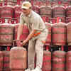 ![A man unloads petroleum gas (LPG) cylinders from a tempo am...]()