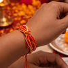 Raksha Sutra, also called Kalava, is a sacred thread tied during religious rituals, festivals, or poojas. It symbolizes divine protection, blessings, and spiritual energy.