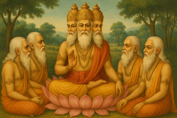 Before the universe took form, before rivers flowed or mountains rose, Lord Brahma: the Creator, desired beings who could help him populate the cosmos. From his deep meditation, four radiant children emerged, not from his body but from his mind: Sanaka, Sanandana, Sanatana, and Sanatkumara. These four sons, known collectively as the Kumaras, were not ordinary beings , they were the embodiment of purity, renunciation, and divine knowledge. They chose a path that even their father had not foreseen, the path of eternal celibacy and spiritual realization, setting in motion one of the most significant philosophical traditions in Hindu thought.