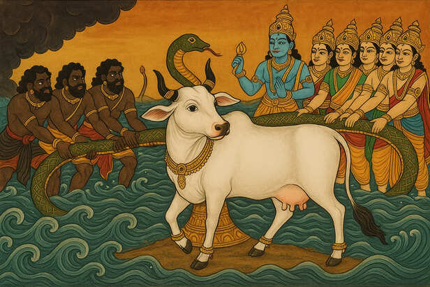 Samudra Manthan and Kamadhenu: The Myth Behind the Cow of Abundance