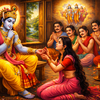 Krishna arrived calmly and asked for food. Surprised, Draupadi showed him the empty vessel. But Krishna found three tiny grains of rice left inside. He ate them with satisfaction. And in that very moment, something unbelievable happened the hunger of the entire universe was satisfied. Durvasa and his disciples felt completely full and left without asking for food. A crisis turned into a miracle.