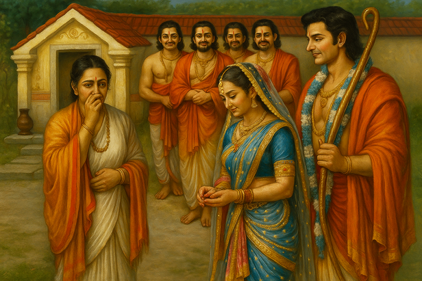 After Arjuna won Draupadi’s hand in the grand Swayamvara by striking the fish’s eye, the Pandavas returned home and told their mother, Kunti, that they had brought back “something precious.” Without knowing what it was, Kunti instructed them to “share it equally.” Bound by her words and the belief that a mother’s command carried the weight of dharma, the brothers decided to honor it — unknowingly setting in motion a divine plan.