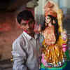 Saraswati is the goddess of wisdom, learning, speech, and creativity. If any deity had reason to dominate attention, command crowds, or demand devotion through spectacle, it would be her.